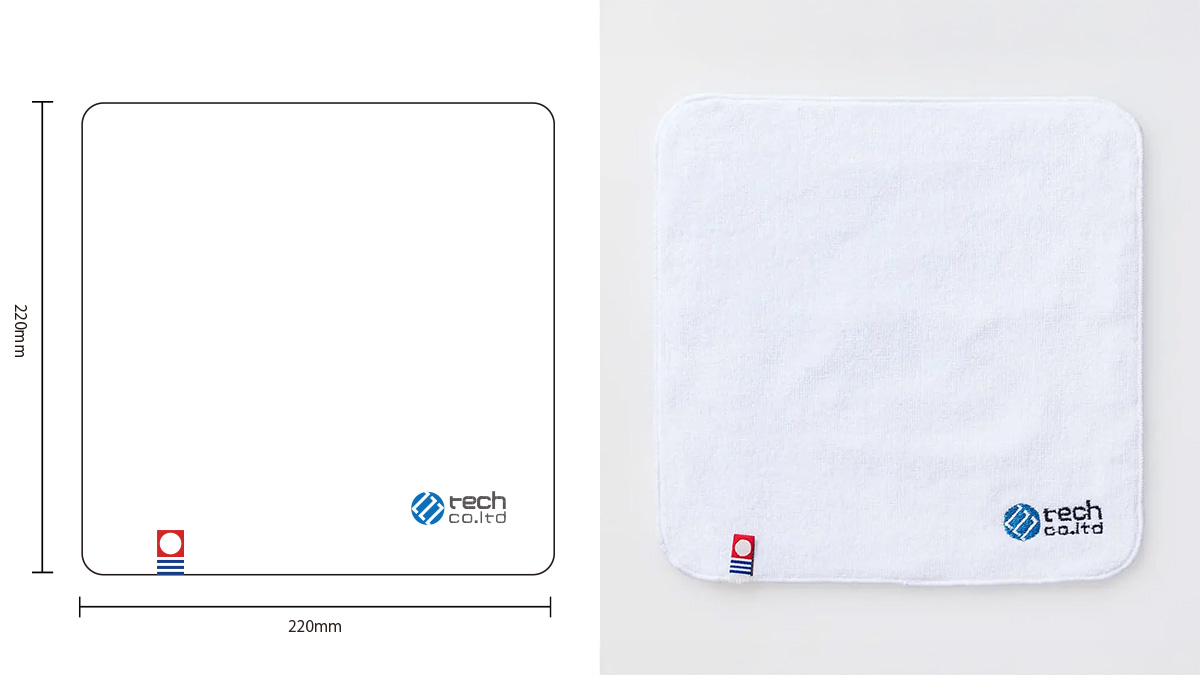 ご覧の通り、タオルに対してどのくらいのサイズ感で、どこにロゴが入るのかが一目瞭然ですね。