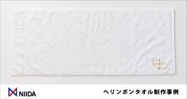 - 加工:プリントネーム、社名・ロゴ等の刺繍によるオリジナルタオル製作が可能