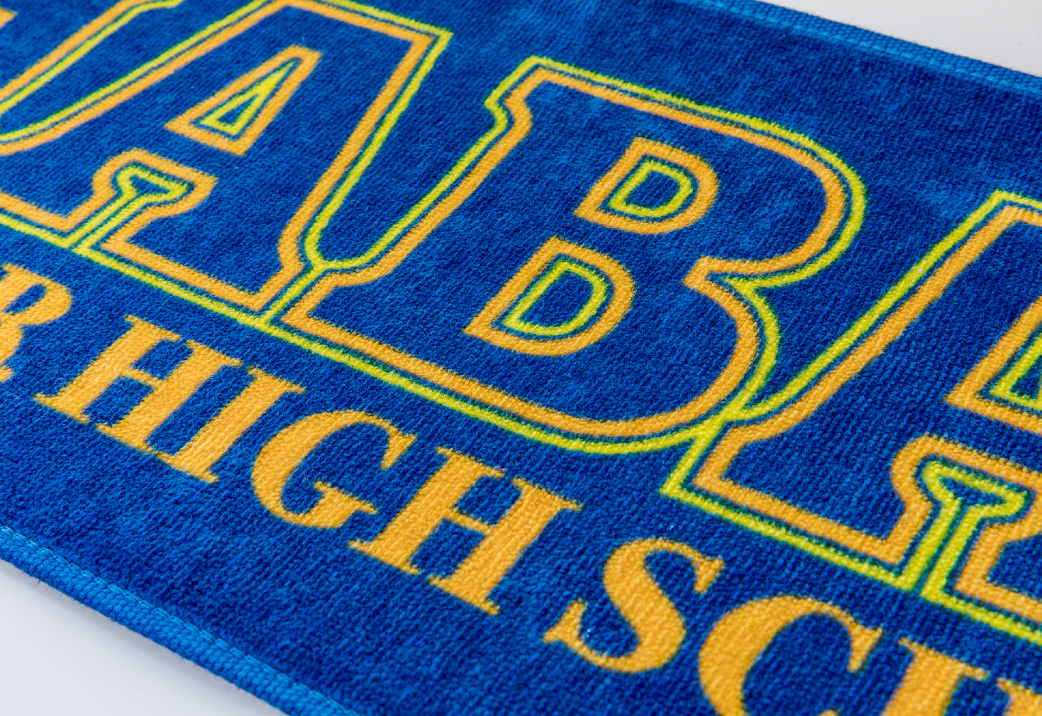 チームカラーの青をベースに、エンブレムと学校名がくっきりと映える、王道の応援タオルです。今回はこのタオルを例に、「色」と「肌触り」にこだわる方に最適な「シルクスクリーン染料プリント」の魅力に迫ります。