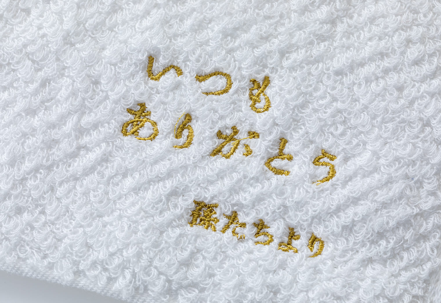 デザインで表現するだけでなく、肌触りの良さや、ふかふかした厚みなど、タオルそのものの質の高さで想いを伝えることができます。個人名を入れられる「刺繍」、オリジナルの「箱入れ」や「熨斗(のし)」等も対応可能です。。