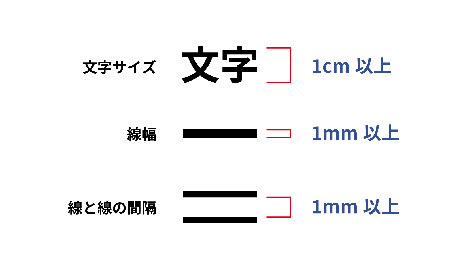 - プリントの場合: 線幅は1mm以上、文字サイズは1cm以上を目安に。