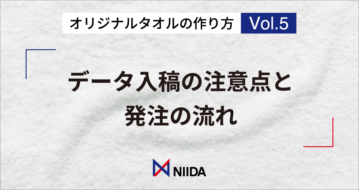 第5回となる今回は、仕様やデザインは決まった、価格と納期も確認ができたという方へ、次のステップの「データ入稿」と「発注」についてです。理想のタオルを作るために知っておきたい入稿データの注意点と発注の流れをわかりやすく解説します。