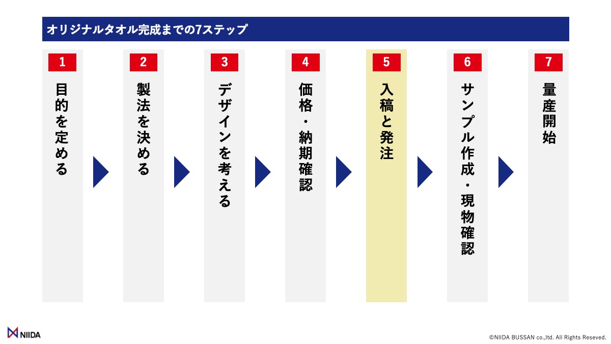 今回は、オリジナルタオル製作の要となる「入稿データ」、それから「発注後の流れ」について解説しました。